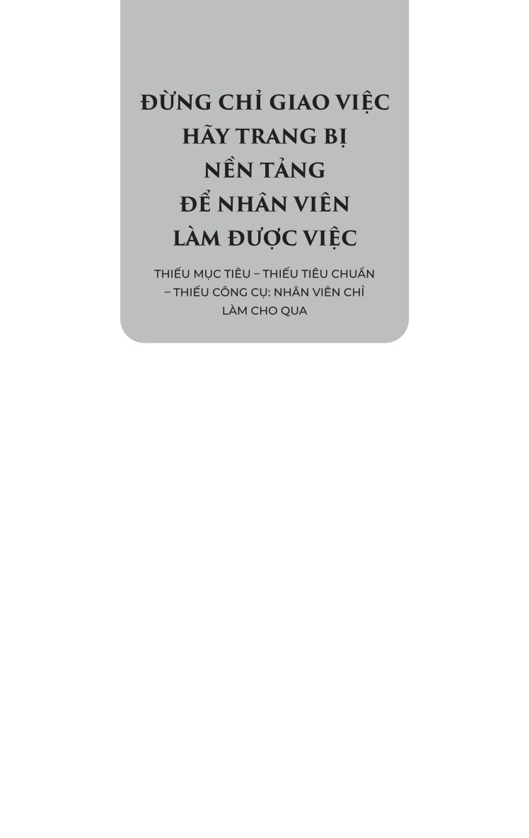 Điểm mấu chốt trong cuốn sách không nằm ở việc bạn ra lệnh thế nào, mà ở việc bạn chuẩn bị ra sao để người khác có thể hoàn thành tốt điều đó. Maxwell bóc tách một cách mạch lạc ba yếu tố mà bất kỳ công việc nào cũng cần có: mục tiêu, tiêu chuẩn, và công cụ.