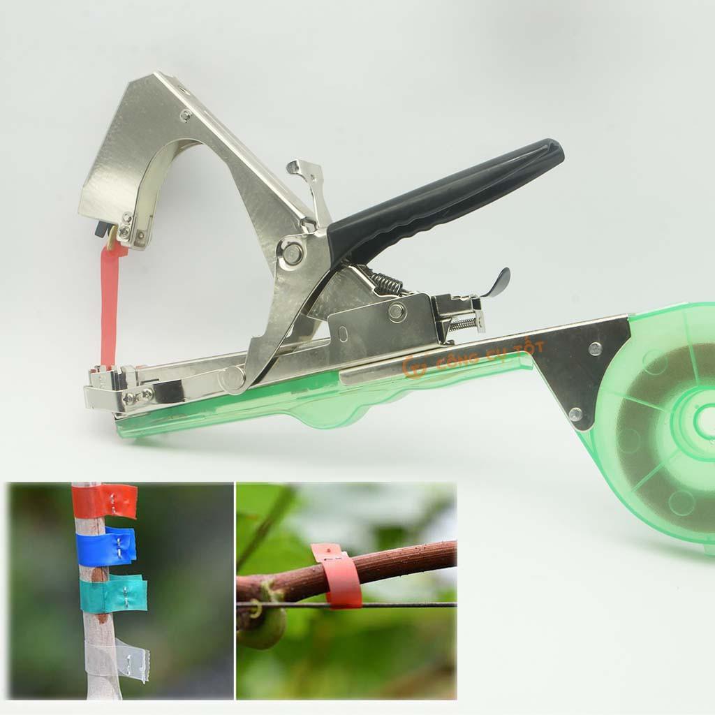 Đẩy thân dây leo vào dây để dây ôm gọn thân dây leo rồi nhả ra, cơ cấu cơ khí sẽ bấm ghim dây lại tạo mối buộc