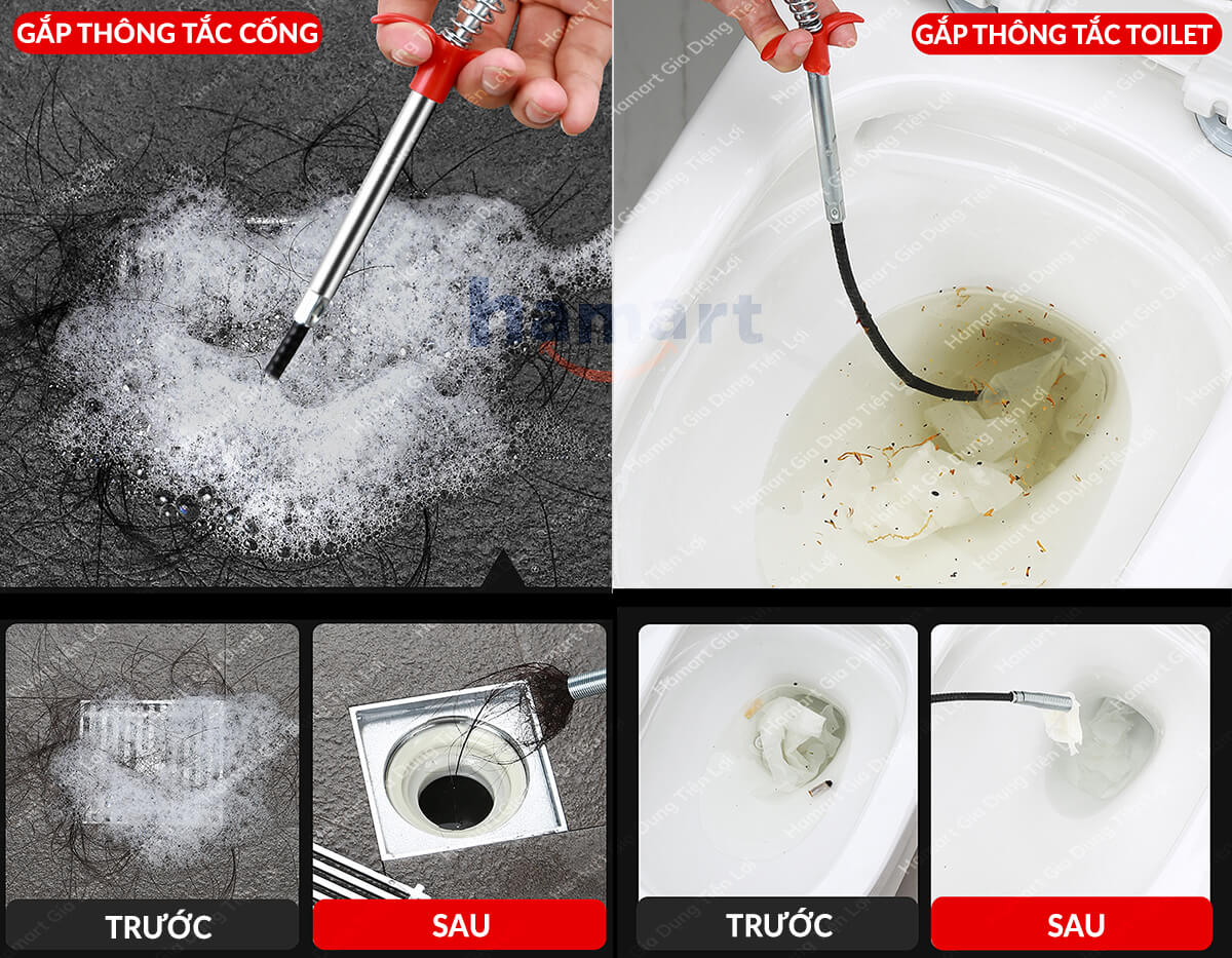 Cây/Que gắp rác thông ống cống thông minh siêu tiện lợi, nhà nhà đều cần! ️ Dụng cụ gắp rác nhỏ thông tắc đường ống tiện ích được thiết kế với lò xo thép cơ động, độc đáo, và dễ sử dụng để loại bỏ các chất cặn bã từ trong ống nhờ vào sự cơ động của lò xo thép. ️ Đầu lò xo được thiết kế rất khoa học, có thể bám vào vật cản một cách dễ dàng và chắc chắn. ️ Kết hợp nhiều chức năng trong sản phẩm như: có thể thông rất nhiều loại lavabo, ống cống nhỏ, ống thoát nước ngoài ban công, sân thượng, phòng tắm... ️ Giúp bạn tiết kiệm nhiều thời gian và sức lực hơn, không còn mắc phải những phiền toái do tắc nghẹt lavabo, bồn cầu.