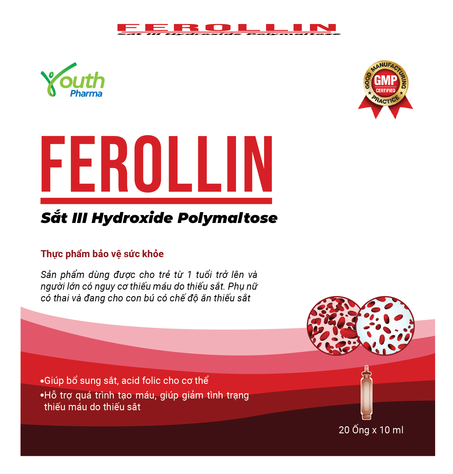Dung Dịch Ferollin Youth Pharma 1. Công dụng: - Giúp bổ sung sắt, acid folic cho cơ thể. - Hỗ trợ quá trình tạo máu, giúp giảm tình trạng thiếu máu do thiếu sắt 2.
