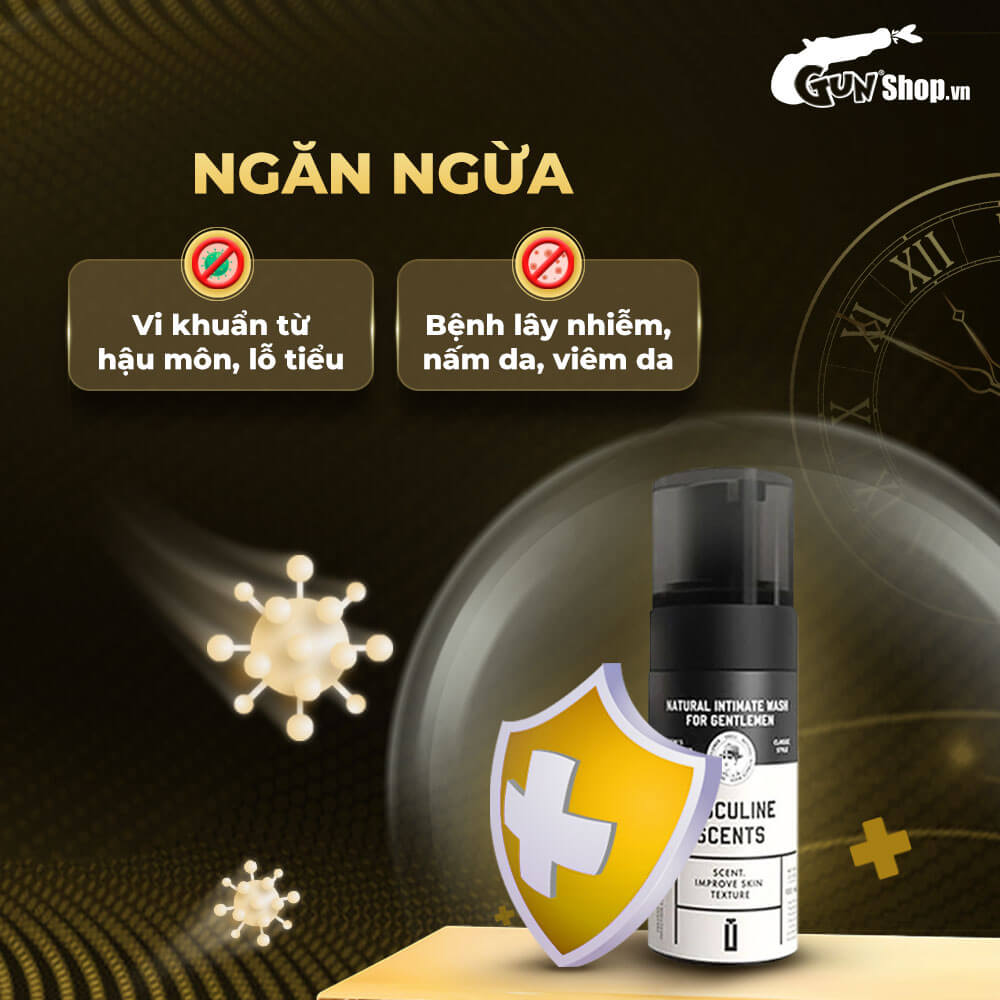 ✪ Đặc điểm: Dạng bọt, có tác dụng tốt trong việc vệ sinh cơ quan sinh dục ngoài, ngăn mùi hiệu quả. Bên cạnh đó là khả năng kháng khuẩn, ngăn chặn sự sinh sôi của vi khuẩn và nấm gây bệnh. Hương thơm nam tính, quyến rũ đem đến cảm giác tự tin, thoải mái cho người dùng. Thành phần sản phẩm giúp cải thiện sắc tố da, giảm thâm và làm sáng da, duy trì độ đàn hồi và mềm mịn. Sản phẩm có thể sử dụng mỗi ngày.