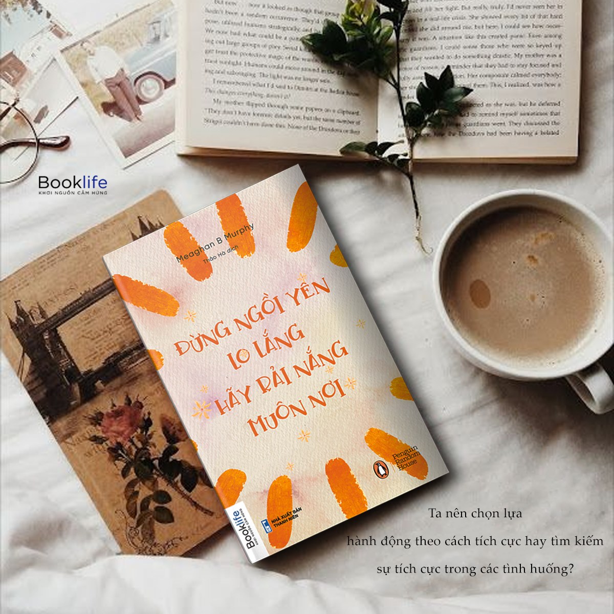 “Mỗi ngày, mỗi giờ, đôi khi là trong mỗi khoảnh khắc, bạn phải chọn lựa hành động theo cách tích cực hay tìm kiếm sự tích cực trong các tình huống.” . Cuộc sống là một hành trình nhiều thách thức: bên cạnh những ngọt ngào, còn có những đắng cay; bên cạnh những hoan hỉ, cũng có những chạnh lòng… Đừng mong chờ cuộc đời nhân từ với bạn, mà chính bạn phải chủ động khiến bản thân mình mạnh mẽ và hạnh phúc hơn. Cuốn sách “Đừng Ngồi Yên Lo Lắng, Hãy Rải Nắng Muôn Nơi” được chắp bút bởi tác giả Meaghan B Murphy sẽ mang đến cho bạn đọc những bài học cuộc sống ý nghĩa, những triết lý đáng suy ngẫm, để chúng ta có thể sống vui vẻ và kiên cường hơn mỗi ngày. Cụ thể, cuốn sách chứa đựng những nghiên cứu mới nhất về khoa học thần kinh, tâm lý học tích cực và những ví dụ đầy cảm hứng về những con người luôn tràn đầy năng lượng mỗi ngày. Cuốn sách trình bày những cách đơn giản để:  Nuôi dưỡng lòng biết ơn.  Kết nối có ý nghĩa với những người xung quanh bạn.  Học cách nói không - để bạn có thể lấp đầy ngày của mình bằng những điều quan trọng nhất đối với bạn.  Nạp năng lượng khi bạn cần.  Lan truyền trách nhiệm tích cực đến những người khác, khiến thế giới trở thành một nơi hạnh phúc hơn, lành mạnh hơn. Đừng Ngồi Yên Lo Lắng, Hãy Rải Nắng Muôn Nơi là một cuốn sách đầy cảm hứng và sức mạnh này cung cấp một kế hoạch chi tiết để cảm thấy bớt căng thẳng và thực sự tận dụng tối đa thời gian mỗi ngày của bạn.