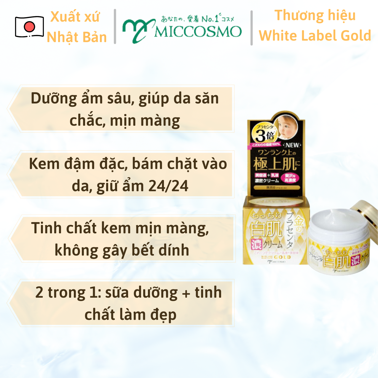 Kem dưỡng trắng da, chống lão hóa từ nhau thai và collagen - WHITE LABEL® PLACENTA RICH GOLD CREAM