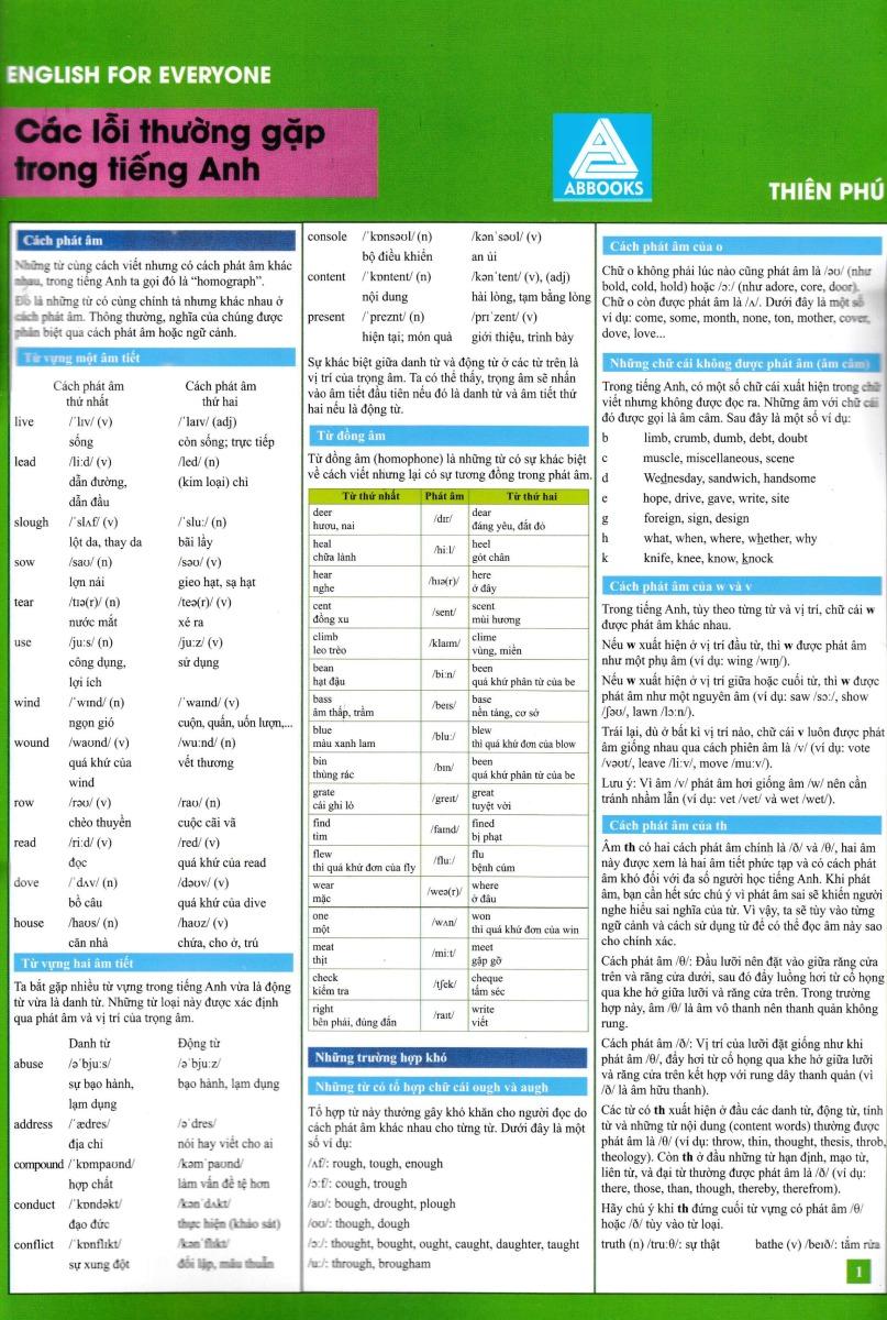 Đây là tài liệu rất thuận tiện để bạn tham khảo cũng như ôn tập kiến thức tiếng Anh khi ở nhà, ở trường hoặc khi tham gia khóa học ngoại ngữ.