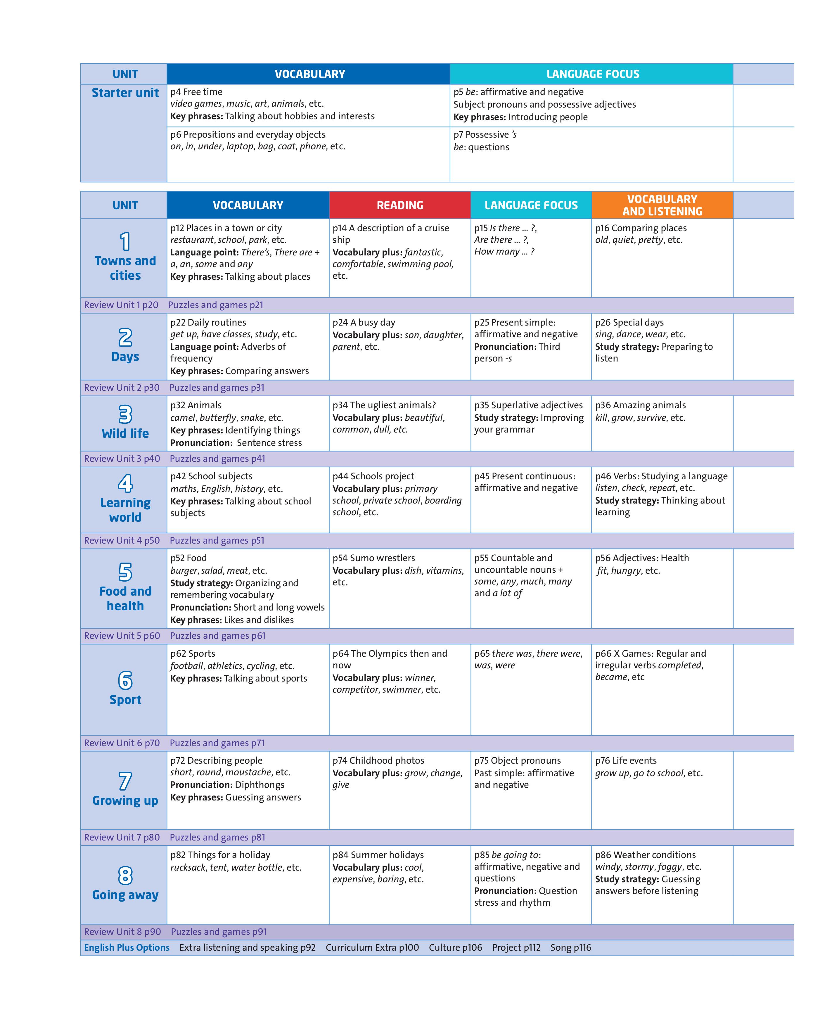 Provides more practice to consolidate the Student Book Picture Dictionary (Levels 1-4) helps with vocabulary practice Grammar Reference Guide (Levels 5-6) offers more practice, and allows students and teachers to check grammar rules