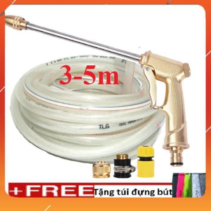 ✨Bộ dây vòi xịt nước rửa xe,tưới cây, tăng áp 3 lần,loại 3m,5m 206701-3 đầu đồng,cút,nối đồng+ túi đựng bút