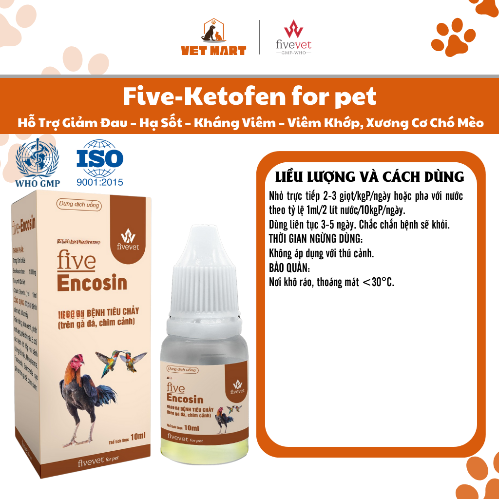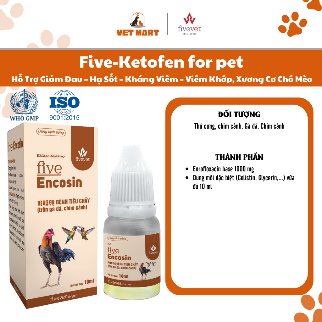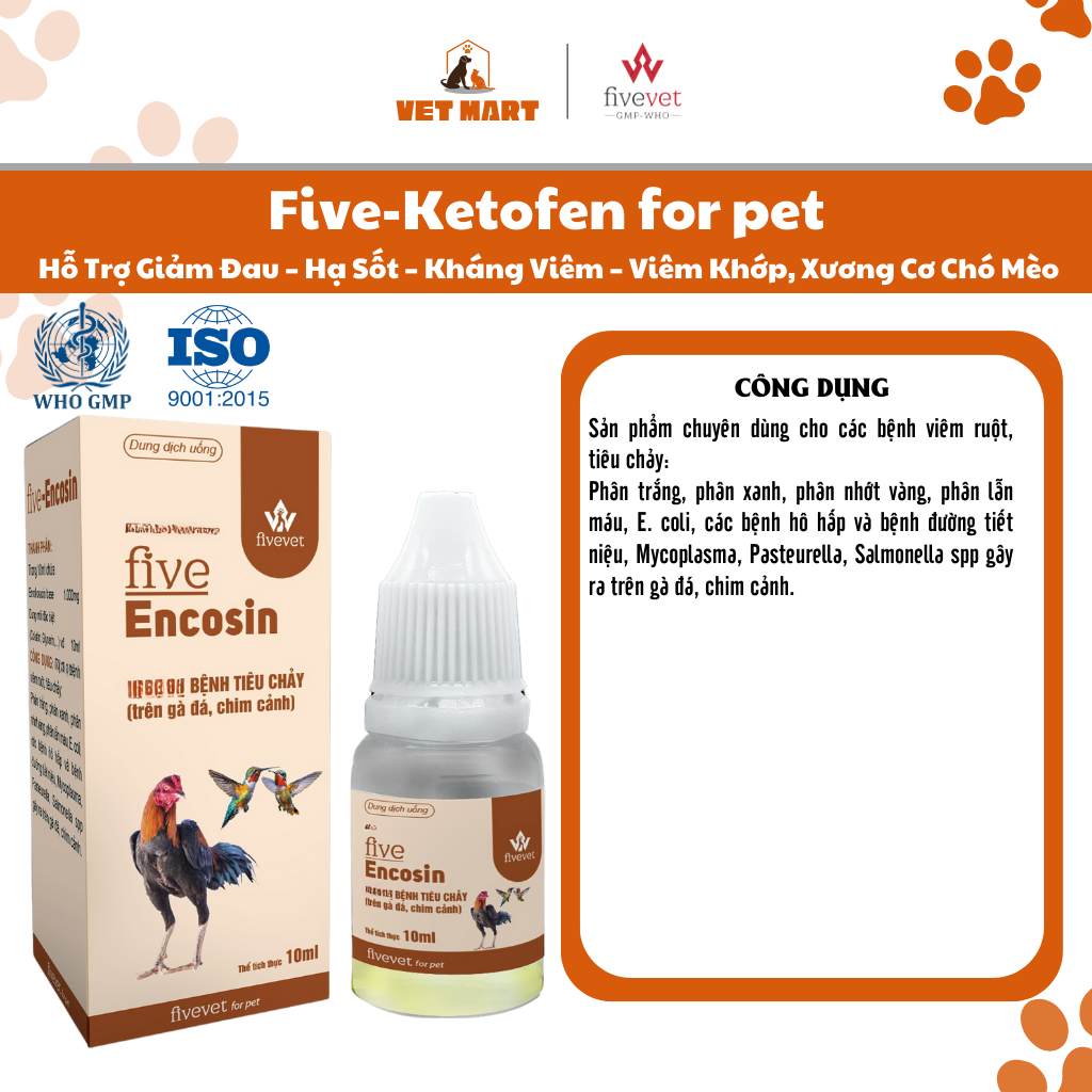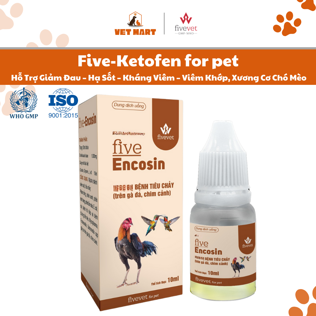 ✨Five-EnCosin Hỗ Trợ Tiêu Hóa Giảm Tiêu Chảy Gà Đá, Chim Cảnh An Toàn, Hiệu Quả