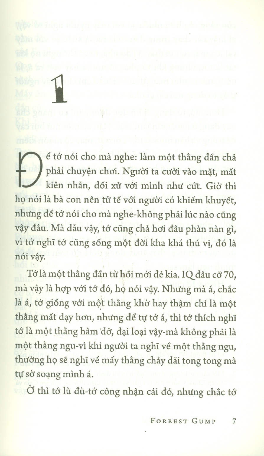 Cuốn sách với lối văn châm biếm ngầm qua góc nhìn ngây thơ của nhân vật chính là đã góp phần đưa Forrest Gump đã trở thành một biểu tượng văn hóa mới của thập niên 1990. Gump là một chàng trai ngốc dễ thương, sẵn sàng cho người khác mà không mong đợi được đền đáp. Đó cũng là giá trị nhân văn nổi bật được chia sẻ nhất quán ở cả tác phẩm văn học và điện ảnh và khiến người đọc cũng như người xem mãi hâm mộ nhân vật này.