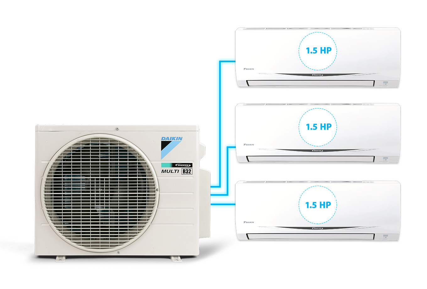 Hệ thống điều hòa không khí Multi là máy điều hòa không khí với máy nén đơn (dàn nóng đơn) có thể kết nối với nhiều dàn lạnh. Hệ thống hoàn hảo dành cho các loại nhà nhỏ với không gian lắp đặt dàn nóng hạn chế như chung cư, trả lại không gian ban công cho người sử dụng. Bằng cách giảm số lượng dàn nóng, hệ thống điều hòa không khí Multi cũng góp phần làm giảm độ ồn cùng với việc đi dây điện quá nhiều và nhiệt thải tích tụ gây ra hiện tượng quẩn giócho hệ thống.
