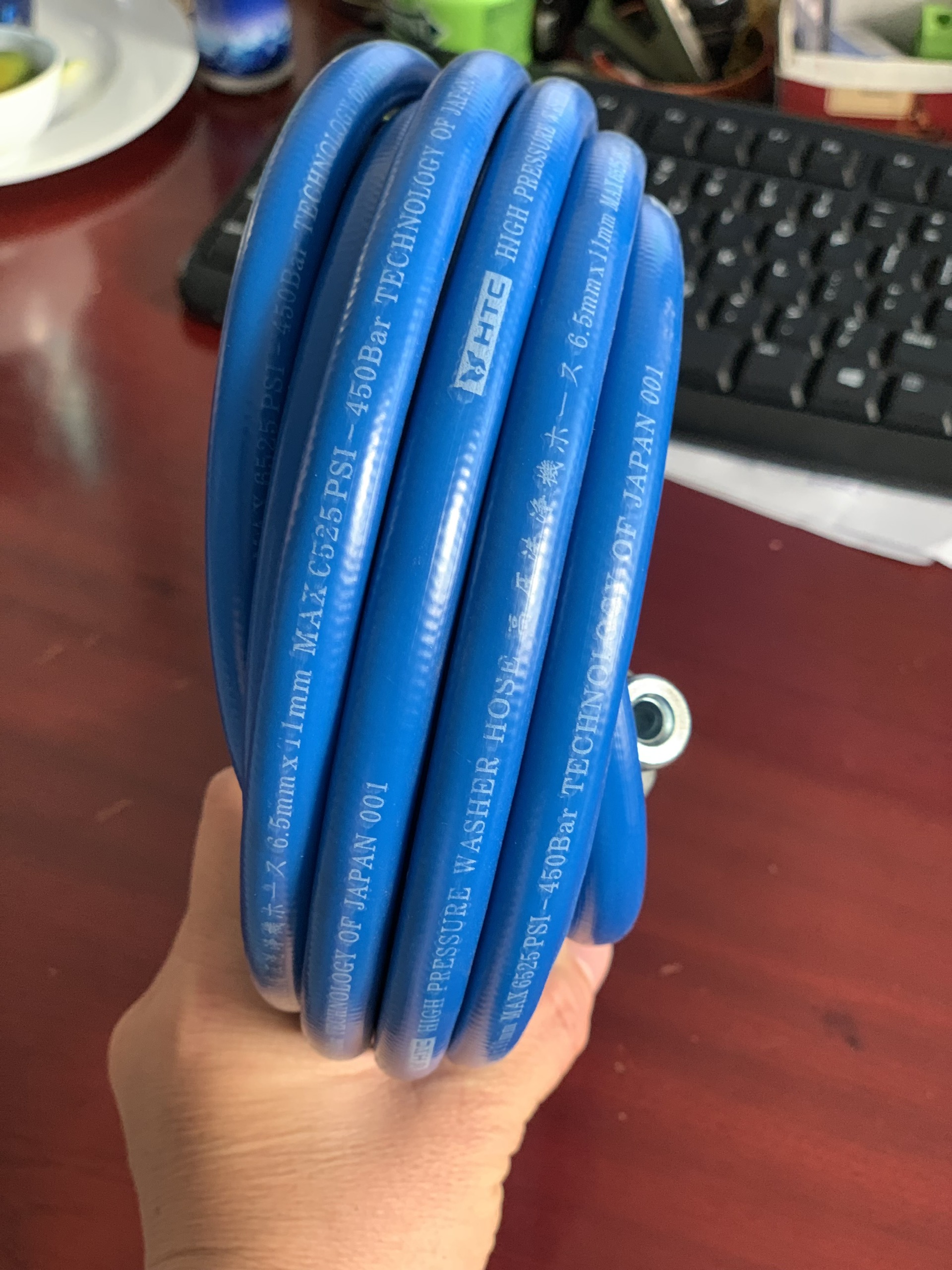 Dây xịt rửa xe HIỆU HTC LOẠI 10M,HTC6511-10W2 từ nhựa PVC áp lực cao 420 bar( 6090PSI),ĐK 6.5*11mmm Khả năng chịu áp lực lên đến 400 bar-6525 PSI,đường kính 6.5x11MM,đầu nối ù hợp cho mọi
