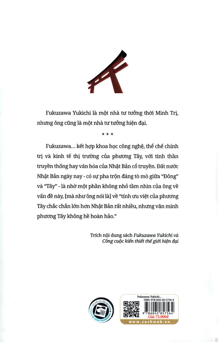Fukuzawa Yukichi Và Công Cuộc Kiến Thiết Thế Giới Hiện Đại Tác giả cuốn sách FUKUZAWA YUKICHI VÀ CÔNG CUỘC KIẾN THIẾT THẾ GIỚI HIỆN ĐẠI là Alan Macfarlane, hiện là giáo sư danh dự của trường King’s Colledge và của đại học Cambridge. Ông viết: “Fukuzama Yukichi là một nhà tư tưởng thời Minh Trị, nhưng ông cũng là một nhà tư tưởng hiện đại. F kết hợp khoa học công nghệ, thể chế chính trị và kinh tế thị trường của phương Tây, với tinh thần truyền thống hay văn hóa của Nhật Bản cổ truyền. Đất nước Nhật Bản ngày nay- có sự pha trộn đáng tò mò giữa “Đông” và “Tây” là nhờ một phần không nhỏ tầm nhìn của ông về vấn đề này, (mà như ông nói là), về “tính ưu việt của phương Tây chắc chắn lớn hơn Nhật Bản rất nhiều, nhưng văn minh phương Tây không hề hoàn hảo”.