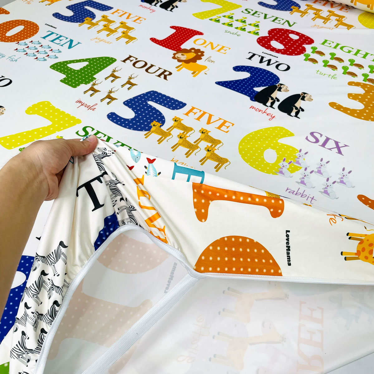QA TẶNG 1 ga chống thấm: tặng 1 vòng dâu cho bé yêu 2 ga chống thấm: tặng 1 vòng dâu + 1 túi giặt. Xuất xứ: sản phẩm của ga chống thấm LoveMama, 100% làm từ Việt Nam May theo kích thước yêu cầu, ib để báo giá nếu kích thước khác trên. Ra chống thấm không sột soạt, không nóng, không bí hơi vải Cotton mềm mại LoveMama Ga chống thấm 3 lớp Cotton + TPU + Nano vải mềm mại thoáng mát, không nóng LoveMama CÔNG DỤNG. Bảo vệ ga nệm khỏi nước chất dơ, thấm xuống nệm gây hư hỏng, giảm tuổi thọ của nệm. Ga chống thấm được phủ lớp chống thấm cao cấp giúp chống thấm nước khi bé tè, bé vô tình làm đổ nước, bé ăn cháo bị dơ, bé bị ó người lớn tuổi không có thời gian vệ sinh giường nệm thường xuyên KHUYẾN CÁO Nên sử dụng ga chống thấm cho trẻ để bảo vệ sức khỏe của bé và gia đình bạn khỏi nấm mốc lâu ngày tích tụ trên nện. THÔNG SỐ KỸ THUẬT Kích thước: May theo yêu cầu khách hàng Nệm cao: 5cm, 10cm, 15cm, 20cm, theo yêu cầu Chất liệu: vải thun Cotton cao cấp loại 1, vải in mộc - thuần Bề mặt tiếp xúc chính là vải Cotton cao cấp loại 1, mềm mại thoáng mát, không sột soạt khi di chuyển. Mặt dưới phủ màng nhựa nguyên sinh TPU chống thấm, an toàn cho trẻ so sinh và trẻ nhỏ. Mặt trên phủ Nano kháng khuẩn. Họa tiết: Số đếm tiếng anh theo tên động vật gần gũi với mọi gia đình Màu sắc: Nhiều màu, Trắng THÔNG TIN CẢNH BÁO Sản phẩm làm giả, nhái rất nhiều, nên mua tại đơn vị chính thức của LoveMama đảm bảo an toàn cho gia đình bạn. Chọn các đơn vị không sử dụng dầu bóng, đánh bóng vải ảo, gây ảnh hưởng cho sức khỏe trẻ.
