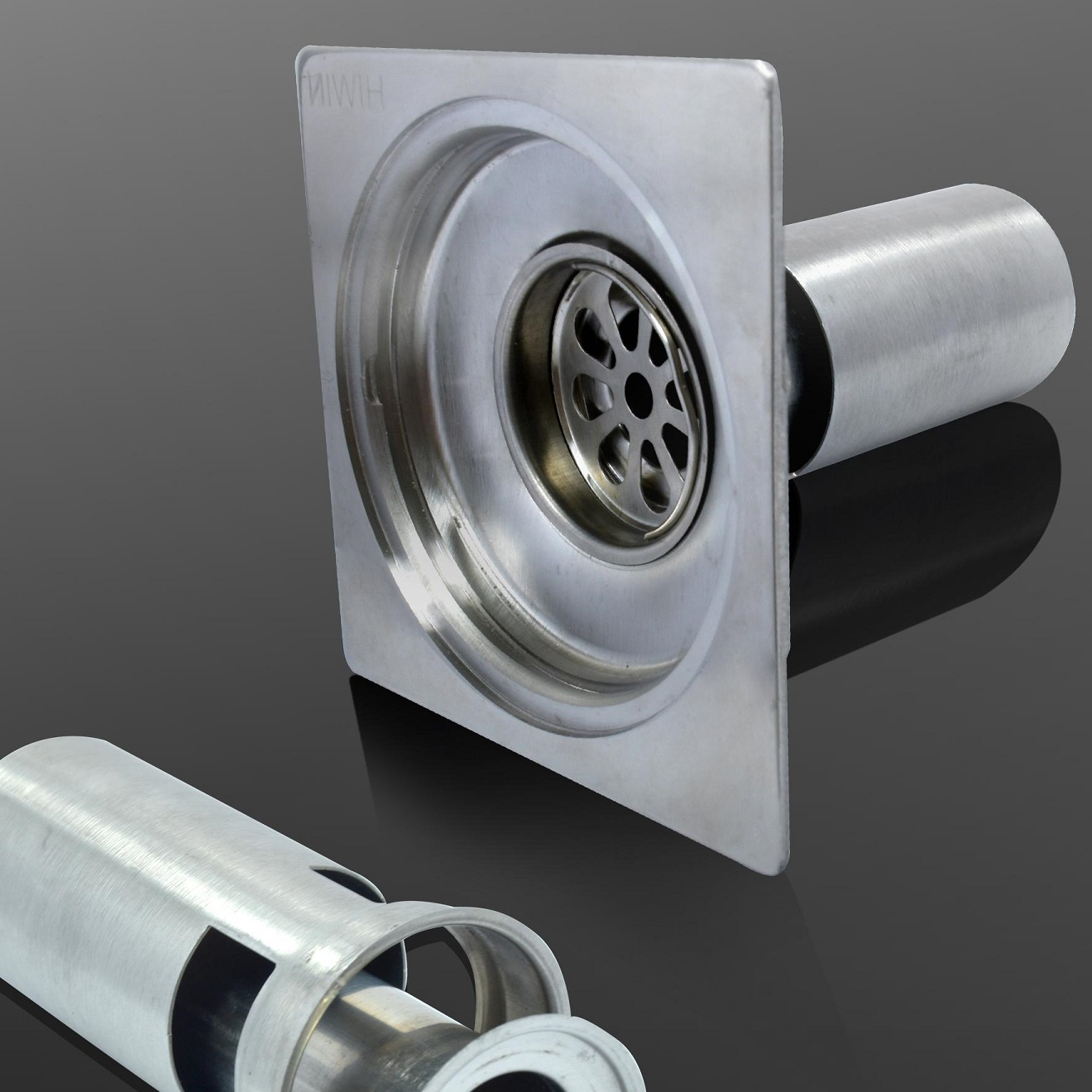 Thiết kế ngõng thoát nước dài từ chất liệu Inox 304 chống gỉ, chịu được sự bào mòn trong nhiều môi trường chất tẩy rửa trong nhà vệ sinh. Bên trong thoát sàn ngăn mùi có khoảng không gian để trữ nước, đây là chìa khoá để ngăn mùi hôi hiệu quả vì mùi hôi không thể bay qua được các phân tử nước đang chặn đứng chúng.