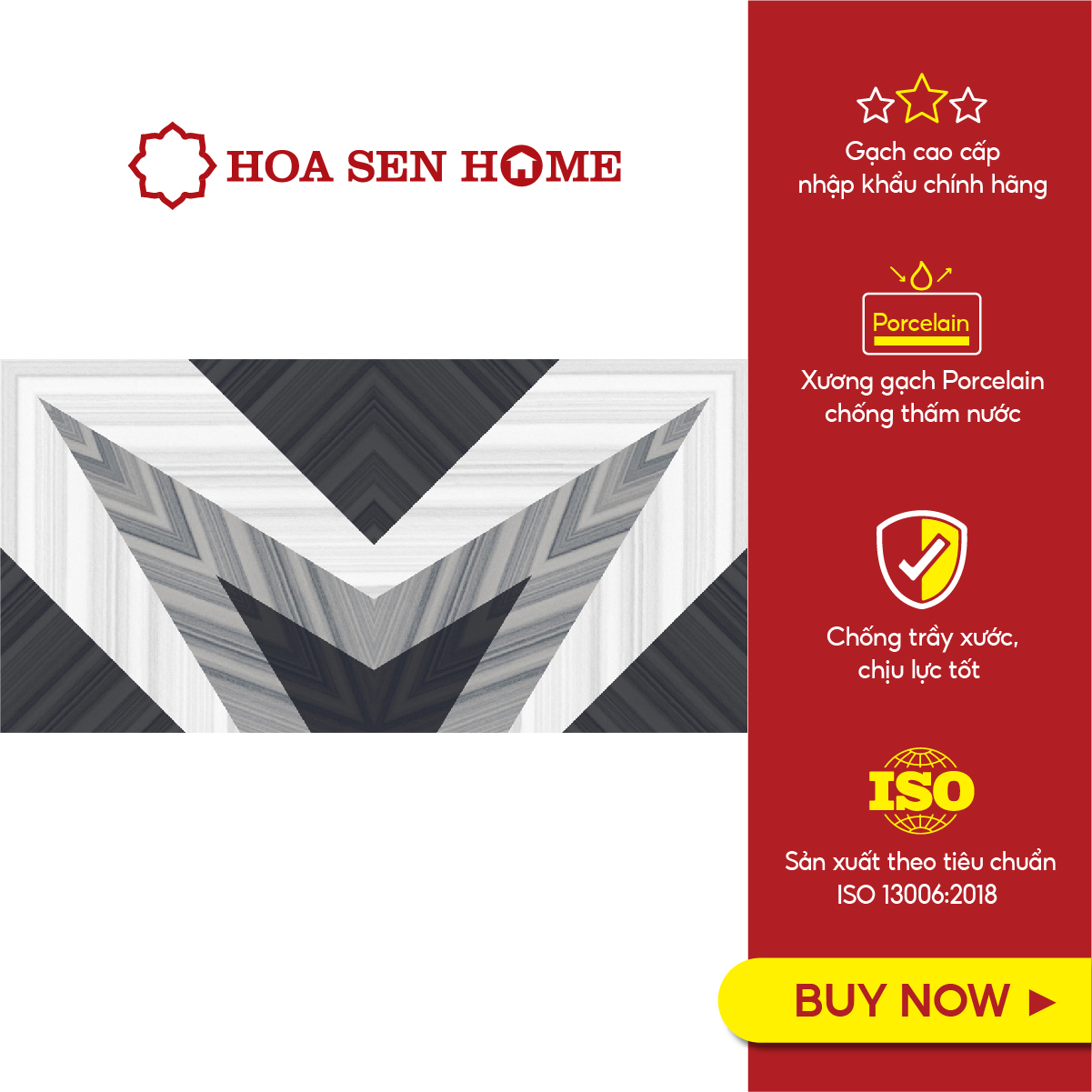 Mua tại TiktokGạch men LUSTRA INEMB0601200059 Xương gạch Porcelain có độ hút nước rất thấp (nhỏ hơn 0.5%), phủ men và phủ Nano chống trầy xước, chống thấm hiệu quả. Họa tiết bề mặt gạch được thiết kế họa tiết Chevron (hình chữ V) và vân đá hiện đại. MÔ TẢ SẢN PHẨM