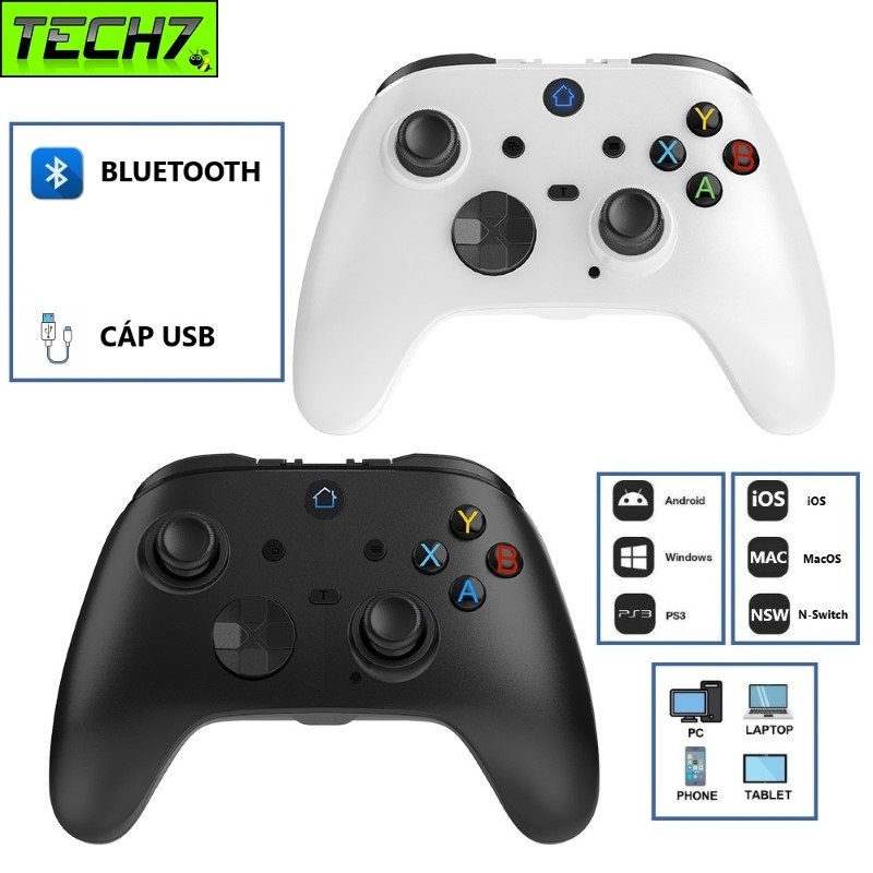 . Gamepad tay game Không dây Bluetooth TS102 đa kết nối cho máy tính, laptop, smartphone, máy tính bảng . Kết nối : Bluetooth - Đầu thu USB - cắm dây trực tiếp . Nguồn : Pin sạc Lithium Cổng sạc TypeC . Trọn Bộ Gồm : Tay game , Cáp sạc , Đầu thu USB , Sách Hướng dẫn tiếng anh . Cần điều khiển 360 độ . Hỗ trợ tính năng rung mạnh mẽ . Hỗ trợ nút Combo macro NL/NR . Hỗ trợ Nhiều Chế độ Tay : Dualshock - Xbox - NSwitch . Hỗ trợ các tốt các game thể thao Fifa , Pes ...   . Thiết bị hỗ trợ : sử dụng cho máy tính - điện thoại - Máy tính bảng - N-Switch . Hệ điều Hành Hỗ trợ :  Android + Window + ios + Mac + Steam + N-Switch . Nhựa an toàn ABS . Chất lượng hoàn thiện cao.   . Điểm Nổi Bật : . Thiết kế ôm tay , có giá treo điện thoại tiện lợi . Có hỗ trợ Rung . 2 chế độ kết nối không dây hoặc có dây . hỗ trợ nhiều game   . Bảo hành 6 tháng , Đổi mới 7 ngày đầu tiên . Có thẻ bảo hành kèm theo sản phẩm khi nhận hàng . Có hỗ trợ phí ship cho khách ở xa khi cần bảo hành