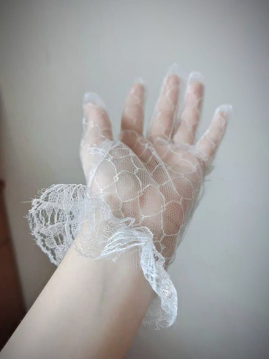 Mua tại TiktokGăng tay Cô dâu và Dạ hội MS: 37513 Chất liệu: ren mắt cáo, cổ găng đính ruy băng Màu sắc: trắng kem