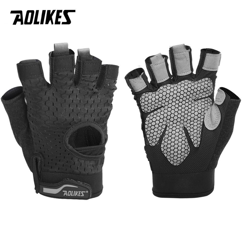 AOLIKES 113 - 1 đôi -Găng tay tập gym hở lưng có đệm lòng bàn tay chống trượt chuyên gym-chính hãng