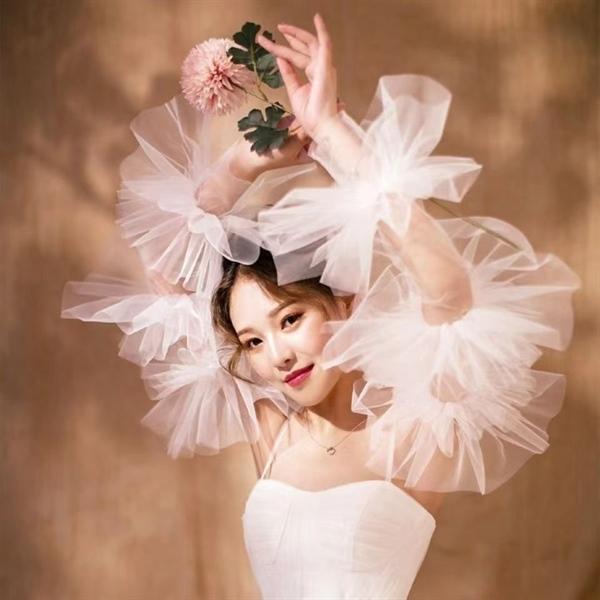 ✨Găng tay nữ vải voan xếp ly phồng dễ thương mẫu mới t10-2023 -Trắng kem