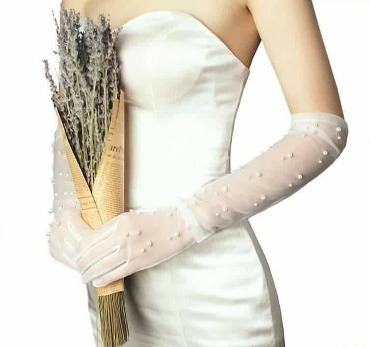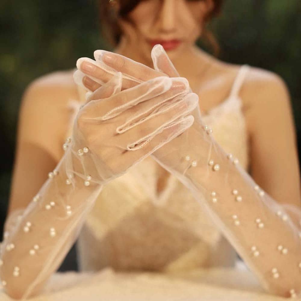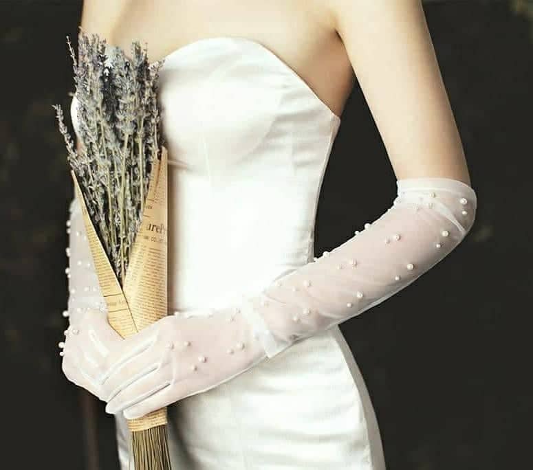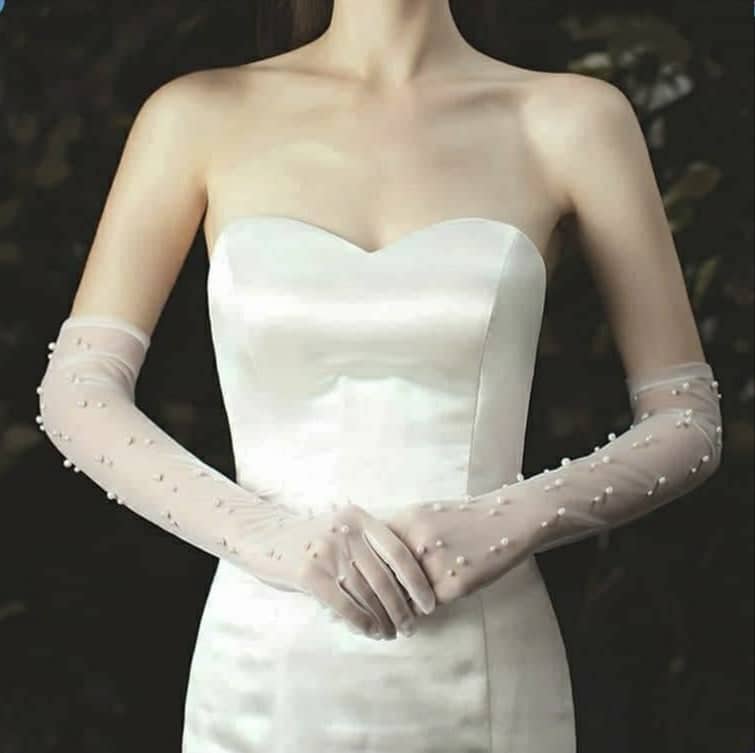 ✨Găng tay trong suốt đính ngọc trai cho Cô dâu và Dạ hội, đi tiệc, sự kiện, lễ hội, chụp ảnh MS: 43645