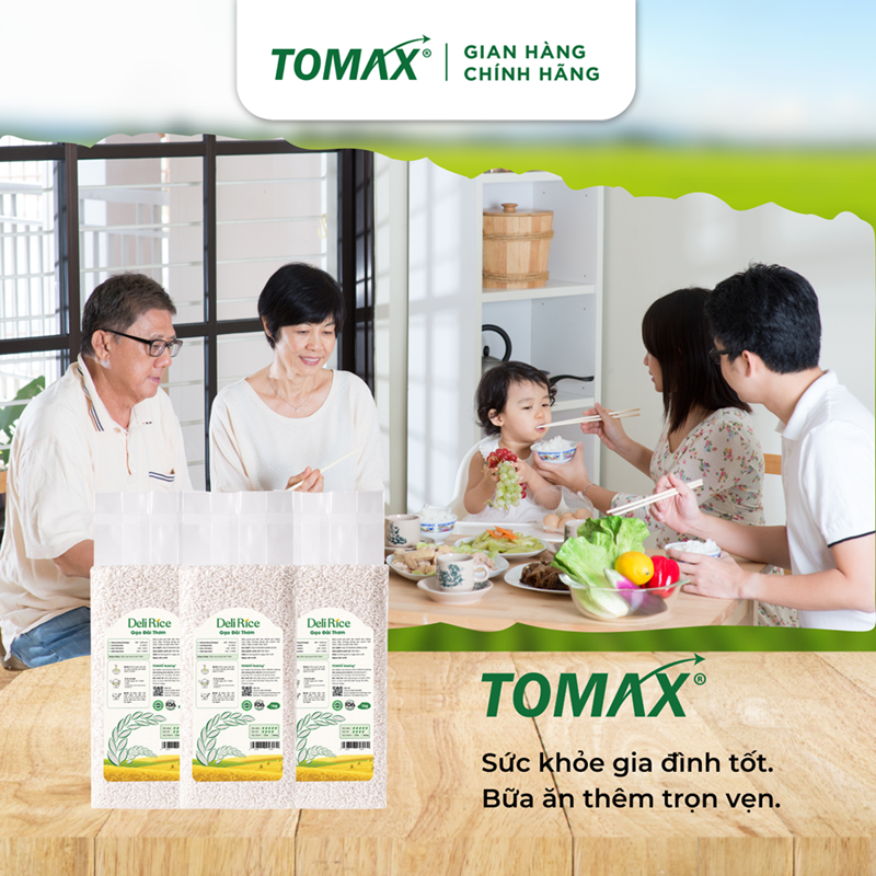 COMBO 3 TÚI 1KG GẠO ĐÀI THƠM Tomax - TƠI XỐP, DẺO THƠM, THƠM DỊU - TOMAX Gạo hữu cơ Đài Thơm Tomax 100% không có chất bảo quản, không có chất chống mọt, chống