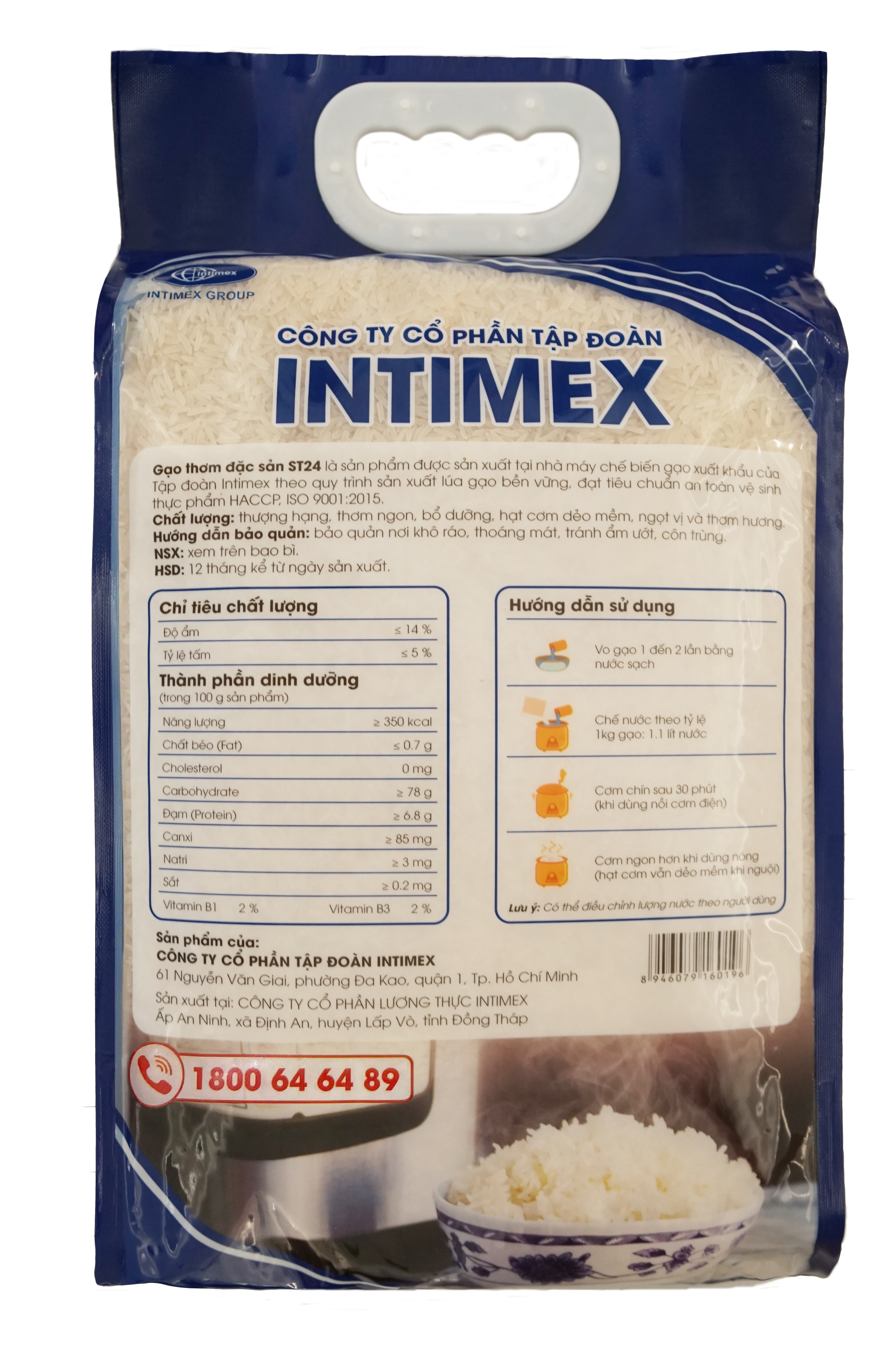 GẠO THƠM ĐẶC SẢN ST24+ Chính hãng Intimex - Gạo ngon xuất khẩu - Cơm dẻo vừa, thơm tự nhiên