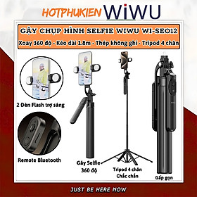 GẬY TỰ SƯỚNG BLUETOOTH WIWU Wi-SEO12 – CHỤP ẢNH ĐẸP, LIVESTREAM ĐỈNH Gậy Selfie 3 trong 1 – Tích hợp chân tripod, đèn trợ sáng, remote bluetooth cùng thiết kế chống rung chuyên nghiệp. Lý
