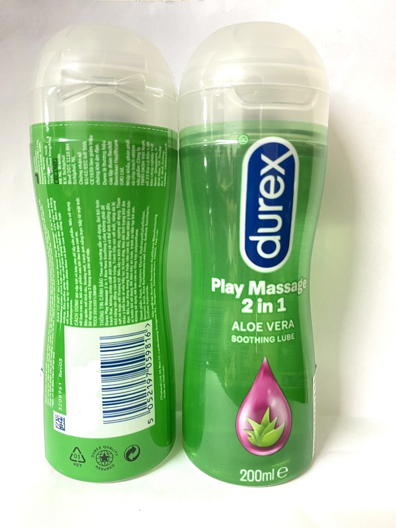 - Là dạng gel bôi trơn có thể dùng để massage cơ thể giống như kem dưỡng ẩm cho da. Cách sử dụng gel bôi trơn Thái Lan Durex Play Massage 2 in 1 Lưu ý khi sử dụng gel gốc nước Durex: Dùng gel với lượng vừa đủ để tạo cảm giác thoải mái. Bảo quản nơi khô ráo thoáng mát, tránh ánh nắng trực tiếp.