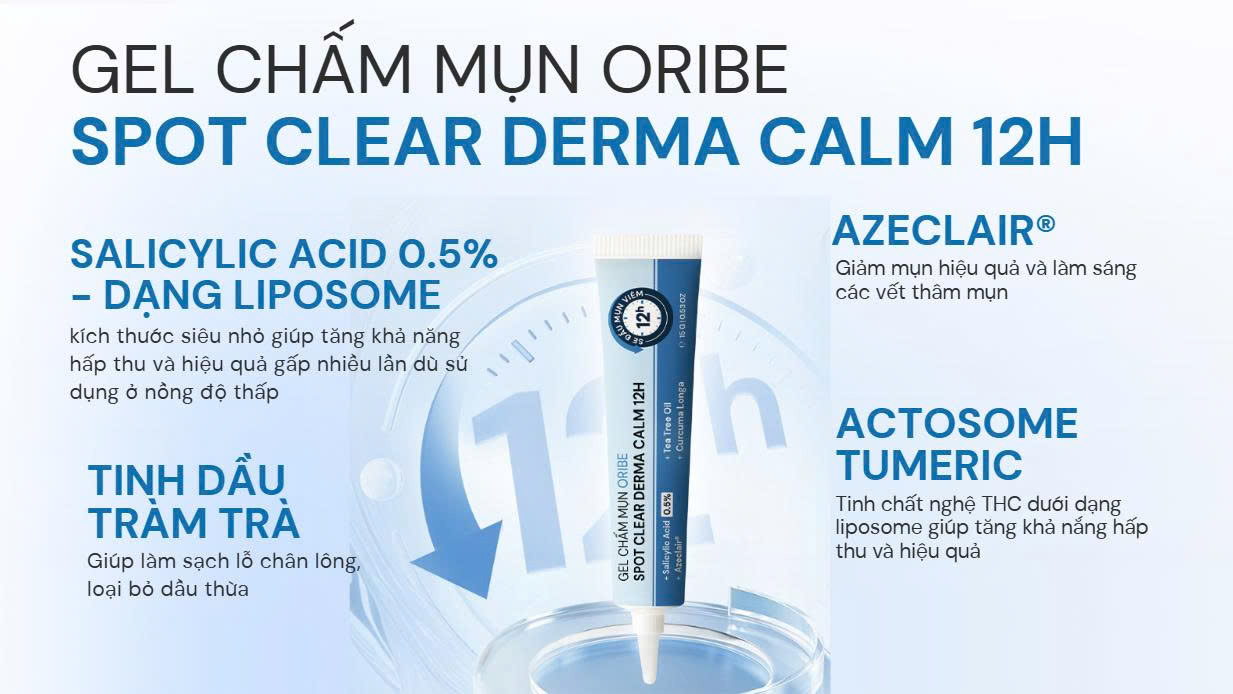 Gel chấm mụn Oribe giúp giảm mụn sưng viêm 12H nhờ công thức chuyên biệt từ thiên nhiên và hoạt chất kháng khuẩn mạnh mẽ. Hiệu quả nhanh – lành tính – phù hợp mọi