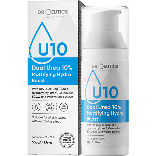 Gel DrCeutics U10 Dual Urea 10% Mattifying Hydro Boost Thành phần: Hydroxyethyl Urea, Urea: Giúp da ngậm nước, giữ ẩm và tăng độ đàn hồi cho da. Urea hỗ trợ phục hồi các thương tổn