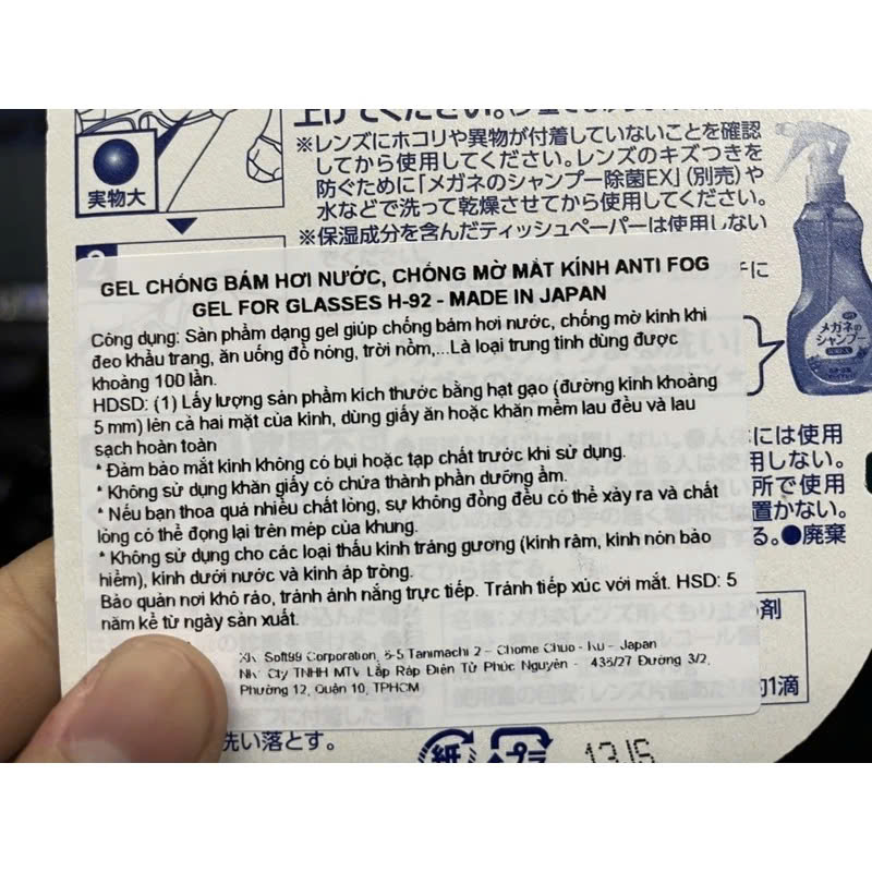 Gel chống sương mù dành cho kính có thể làm tan sương mù khi đeo mắt kính. Có thể sử dụng kính ngay sau khi bôi gel mà không cần phải chờ khô.