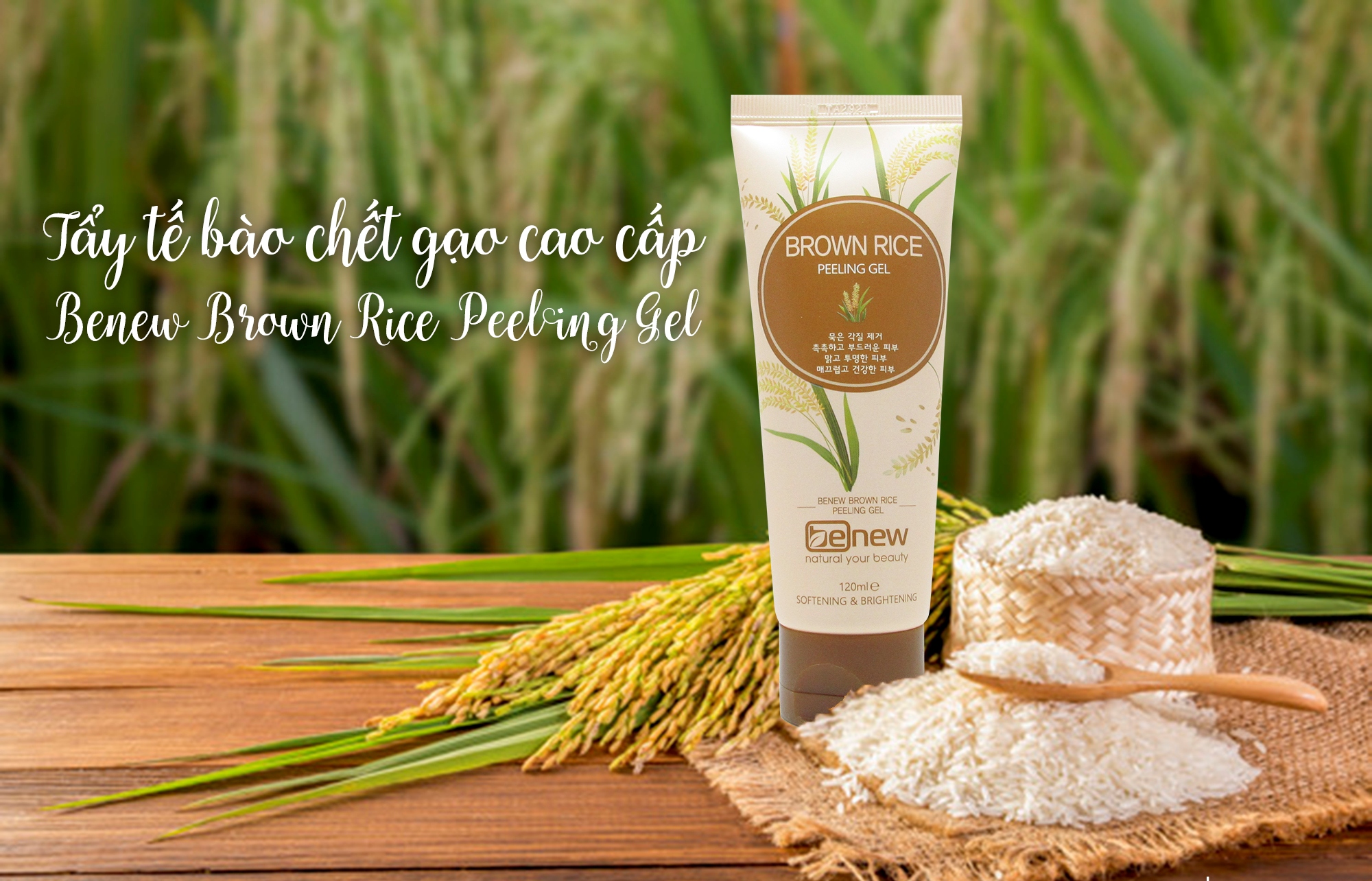 Tẩy tế bào chết Gạo cao cấp - BENEW Brown Rice Peeling Gel: Chiết xuất từ mầm gạo lúa mạch lên men kết hợp với thảo dược nguồn gốc Thiên nhiên. BENEW BROWN RICE PEELING GEL giúp loại bỏ hoàn toàn lớp tế bào chết trên da, đồng thời làm sạch sâu lỗ chân lông, cuốn bay mọi bã nhờn, bụi bẩn. Các Vitamin từ mầm gạo lúa mạch không chỉ làm sạch lớp da chết cực kỳ hiệu quả, mà bột gạo còn làm sạch lớp dầu thừa, bổ xung các chất dinh dưỡng cho da đồng thời giúp ngăn ngừa hình thành các vết nám trên da, tăng độ ẩm và giúp làn da trở nên Trắng sáng tự nhiên. Thích hợp với mọi loại da, hiệu quả đặc biệt với da dầu.