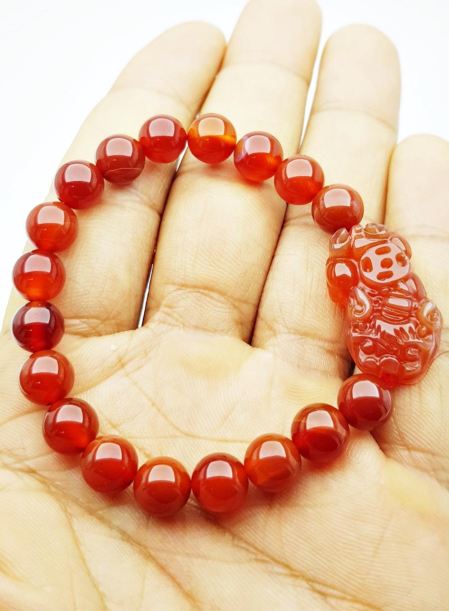 Vòng tay phong thủy đá mã não đỏ phối tỳ hưu - Hợp mệnh hỏa, mệnh thổ | Ngọc Quý Gemstones |