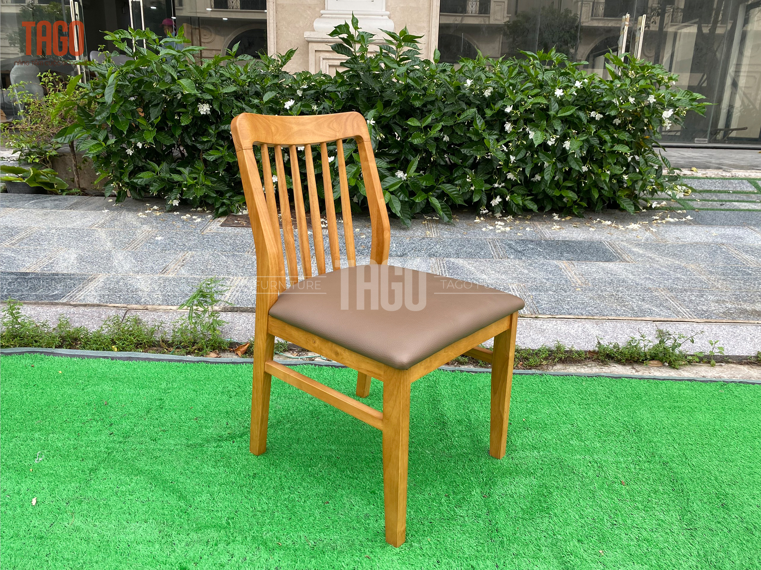 GHẾ GỖ TỰA LƯNG ĐỆM GIA - MANGO CHAIR - Kích thước: 46 x 44 x 81 cm - Chất liệu: gỗ cao su tự nhiên cao cấp bọc da - Màu sắc: gỗ sáng,