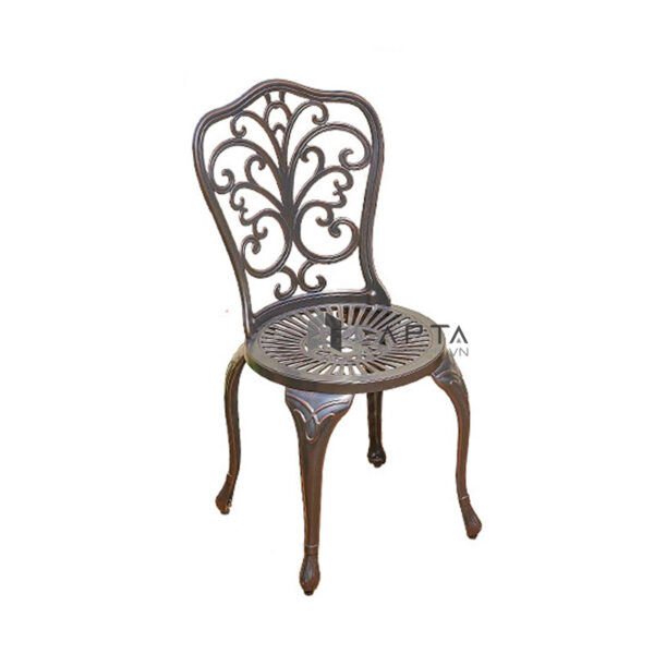 Ghế Cafe sân vườn nhôm đúc màu đồng CC2017-A Nội thất Capta Ghế ngoài trời có tay tựa thân ghế hình bông sen - Chất liệu: nhôm đúc sơn tĩnh điện màu đồng - Thiết