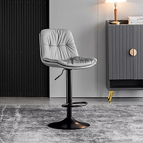 ✨Ghế đảo bếp chân tăng giảm CB2283A-P Nội thất Capta Ghế bar nệm bọc PVC màu xám có lưng tựa chân thép sơn tĩnh điện màu đen