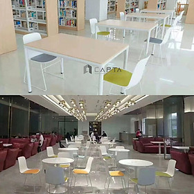 ✨Ghế đào tạo thân nhựa CC1552-P Nội thất Capta Ghế Cafe - Fastfood thân nhựa màu trắng nệm ngồi bọc vải bố có tựa không tay chân sắt sơn tĩnh điện màu trắng