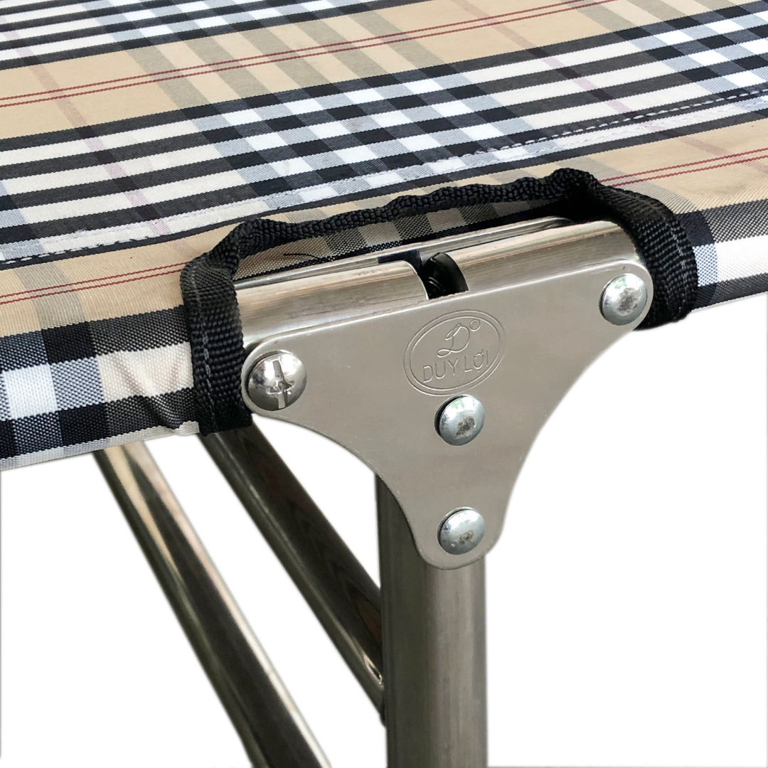 Khung giường xếp được làm từ chất liệu inox giúp cho khung giường không bị gỉ sét, phù hợp với mọi điều kiện thời tiết và môi trường khác nhau.