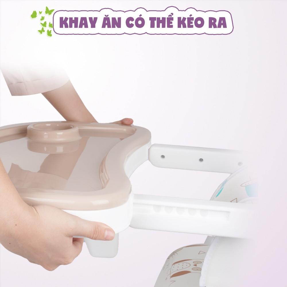 - Khay ăn có thể tháo rời dễ dàng vệ sinh hoặc khi bé đã lớn hơn, có thể ngồi ăn chung bàn với cả nhà. Khay ăn có tới 3 nấc điều chỉnh xa gần hoặc tháo rời.