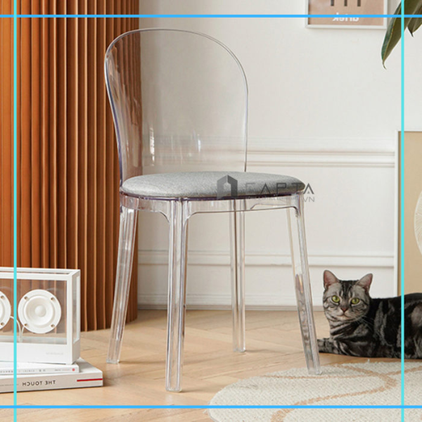 ✨Ghế ngồi trang điểm nhựa trong suốt có nệm vải Ghế phòng ăn Ghế nhà hàng ICE 2A-PC