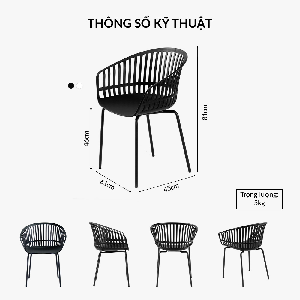 Ghế cafe tiếp khách thân nhựa màu đen BASKET Nội thất Capta Ghế đọc sách phòng khách thân nhựa pp ghế rổ chân thép sơn giả gỗ tại hcm - Chất liệu: Thân nhựa PP