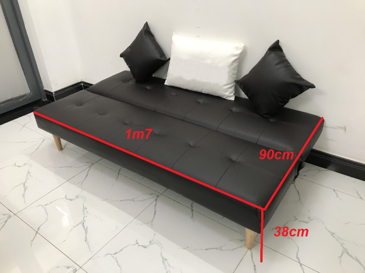 Sofa bed kích thước 1m7 x 90 cm khi mở thành giường. Kích thước ghế dài 1m7 x rộng 45 cm x Cao 68 cm Ghế có 3 chức năng giường, thư giãn và ghế