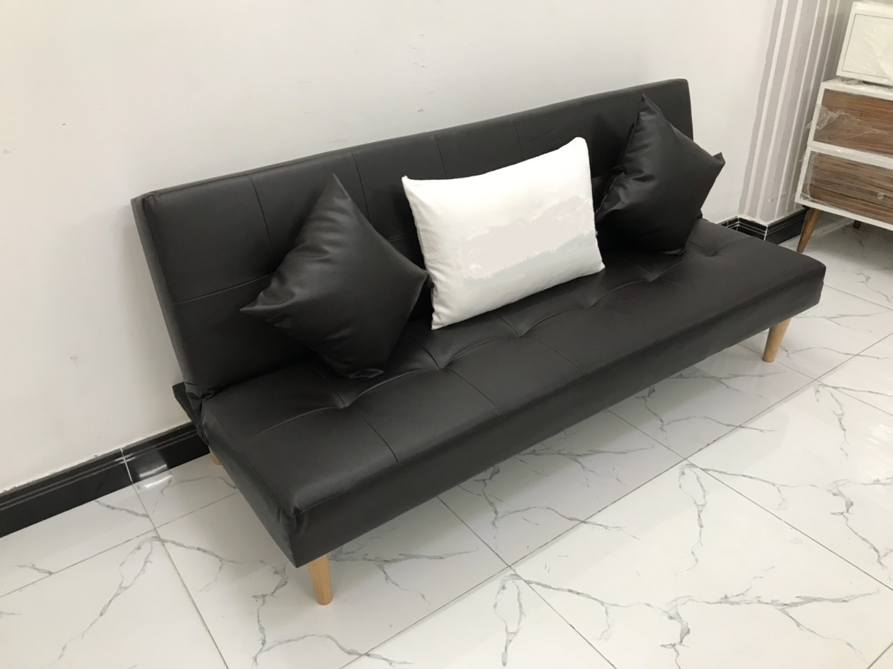 Sofa bed, sofa giường 1m7x90, có thể bật ra thành giường để nằm Kích thước 1m7x90 (kích thước phổ thông) Chất liệu: khung gỗ dầu, mút d30, simili Bao gồm: ghế dài 1m7x90, 2 gối