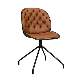 ✨Ghế tiếp khách có nệm màu nâu bò chân cố định Beetle 3-P1 Nội thất Capta Ghế Ghế làm việc nhỏ gọn thân nhựa PP màu đen nệm PVC nâu bò chân sắt cố định sơn màu đen tại HCM