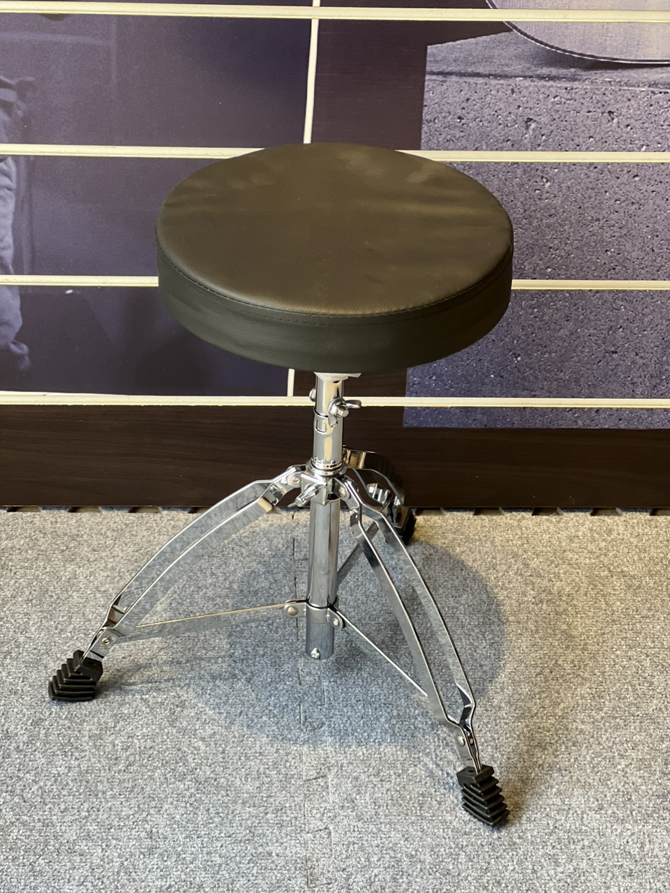 - Chân ghế được làm bằng sắt chắc chắn, bền bỉ, mặt ghế làm bằng chất liệu giả da, mang đến sự êm ái và thoải mái cho người ngồi chơi trống.