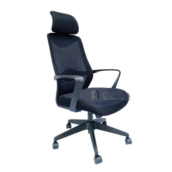 ✨Ghế xoay lưng lưới nệm vải có tựa đầu màu đen CM4288-M Nội thất Capta