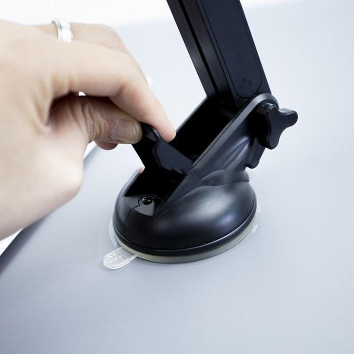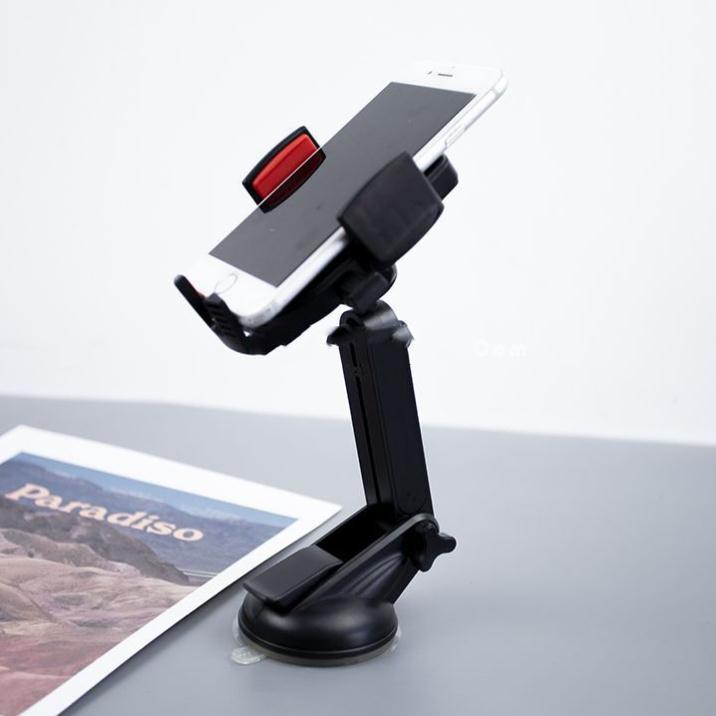 ĐẶC ĐIỂM NỔI BẬT + Đế hít bằng keo chắc chắn, có thể gắn vào kính chắn gió hoặc táp lô. + Thân kép có thể điều chỉnh độ dài + Phần kẹp điện