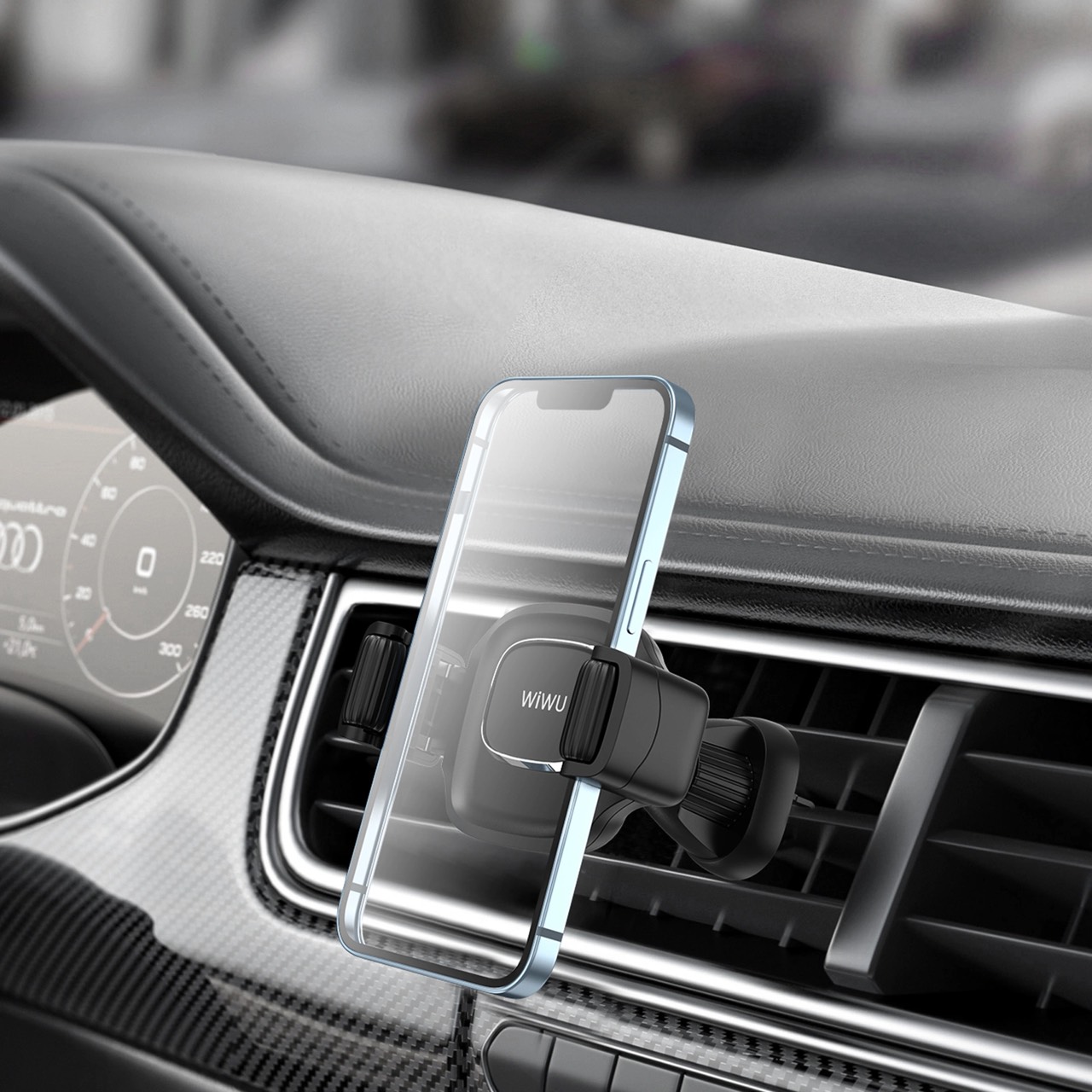 Giá đỡ điện thoại Wiwu Car Mount Thương hiệu: Màu sắc: đen Giá đỡ dành cho thoại trên lỗ thông hơi tô Chất liệu: Hợp kim nhôm + PC