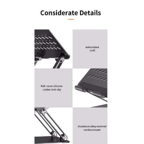 Giá đỡ Laptop Stand Thương hiệu: Mô tả sản phẩm - Thiết kế công thái học: Giá đỡ máy tính xách tay thiết kế kiểu Z có thể điều chỉnh độ cao và góc bằng