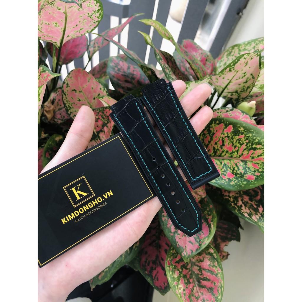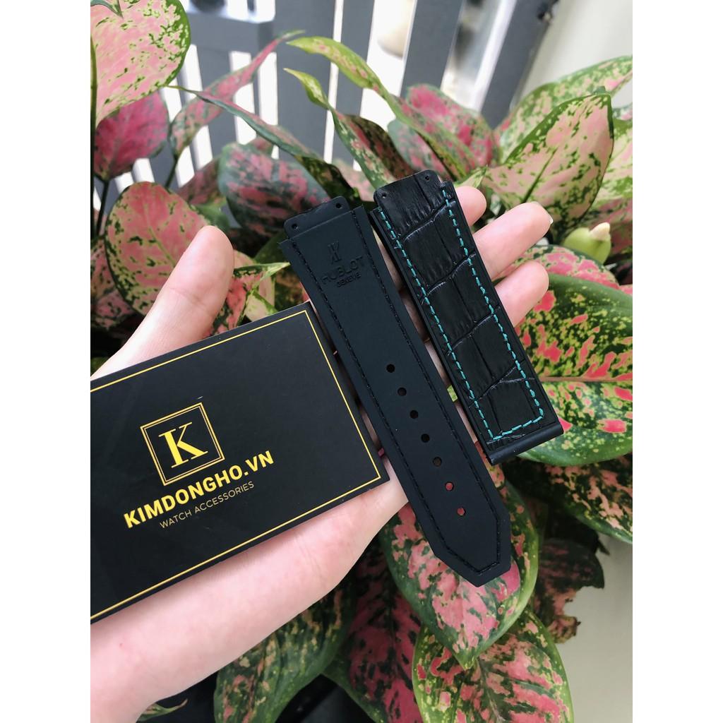 ✨Giá Hủy Diệt Dây Đồng Hồ HUBLOT Lót Da Vân Đen Chỉ Xanh Case 42 Size Dây 19 - 25 - 22