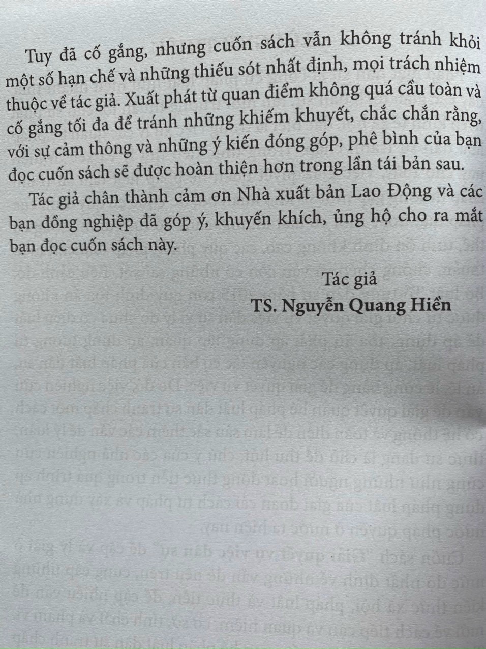 Giải quyết vụ việc dân sự NXB: Lao Động Tác giả: TS. Nguyễn Quang Hiền Sách khổ: 14.5x20.5cm Số trang: 406 LỜI GIỚI THIỆU     Pháp luật dân sự là công cụ pháp luật hữu